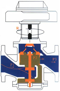 動態平衡電動調節閥是區別于傳統的電動調節閥的新一代產品。是動態平衡與電動調節一體化的產品。如右圖所示,在系統負荷波動較大的流量系統中,當系統壓力變化時,動態平衡電動調節閥二端的壓差(P1-P3)也隨之變化 |